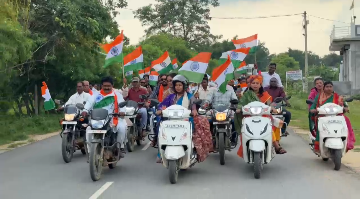 सूरजपुर :– “हर घर तिरंगा” अभियान के अंतर्गत पूरे छत्तीसगढ़ में भारतीय जनता पार्टी द्वारा आयोजित तिरंगा रैलियों में महिला एवं बाल विकास तथा समाज कल्याण मंत्री श्रीमती लक्ष्मी राजवाड़े ने सक्रिय रूप से भाग लेकर राष्ट्रीय ध्वज के प्रति जनमानस में उत्साह और सम्मान का संदेश दिया।मंत्री श्रीमती लक्ष्मी राजवाड़े ने इस अवसर पर कहा कि तिरंगा केवल एक ध्वज नहीं, बल्कि यह भारत की एकता, अखंडता और गौरव का प्रतीक है।    उन्होंने कहा कि प्रधानमंत्री श्री नरेंद्र मोदी के आह्वान पर चलाए जा रहे ‘हर घर तिरंगा’ अभियान को जन-जन तक पहुँचाना हमारा कर्तव्य है। यह अभियान केवल उत्सव नहीं, बल्कि आने वाली पीढियों के लिए प्रेरणा है। उन्होंने सभी नागरिकों से अपील की कि वे स्वतंत्रता दिवस पर अपने घरों पर तिरंगा फहराकर देश के प्रति प्रेम और सम्मान प्रदर्शित करें।    10 अगस्त को भैयाथन में आयोजित मंडल स्तरीय तिरंगा रैली में मंत्री श्रीमती राजवाड़े स्कूटी रैली और पैदल मार्च में शामिल हुईं। इस अवसर पर वन विकास निगम अध्यक्ष श्री रामसेवक पैकरा, भाजपा मंडल अध्यक्ष श्री सुनील साहू, जनपद उपाध्यक्ष श्री राजीव प्रताप सिंह, भाजपा नेता श्री शीतल गुप्ता तथा बड़ी संख्या में भाजपा कार्यकर्ता उपस्थित रहे।