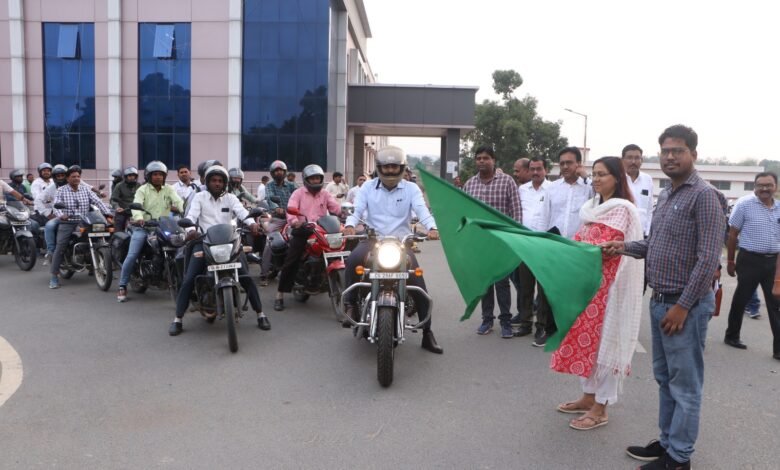 सूरजपुर। स्वीप कार्यक्रम के तहत कलेक्ट्रेट परिसर से स्टेडियम ग्राउंड तक मतदाता जागरूकता के लिए बाईक रैली निकाली गई। जिसकी अगुवाई जिला निर्वाचन अधिकारी श्री रोहित व्यास द्वारा की गई। बाईक रैली को अपर कलेक्टर श्रीमती नयनतारा सिंह तोमर व उप जिला निर्वाचन अधिकारी श्री नरेन्द्र पैकरा ने हरी झंडी दिखाकर रवाना किया। रैली में बडी संख्या में अधिकारी व कर्मचारी शामिल थे। बाईक रैली की शुरुआत जिला संयुक्त कार्यालय (कलेक्ट्रेट) से हुई। इसके साथ ही रैली का समापन शहर से होते हुए स्टेडियम ग्राउंड पर हुआ। रैली में मतदाता जागरूकता वेन भी शामिल थी। जिसके माध्यम से मतदाता जागरूकता संदेश का प्रचार शहर में किया गया।