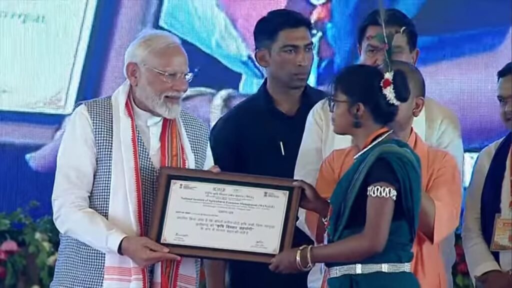 प्रधानमंत्री के हाथों सरगुजा की कृषि सखी अनिता को मिला प्रमाण पत्र