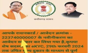 छत्तीसगढ़ में सार्वजनिक वितरण प्रणाली के अंतर्गत वर्तमान में प्रचलित सभी 77 लाख राशनकार्डों के नवीनीकरण का कार्य दिनांक 15…