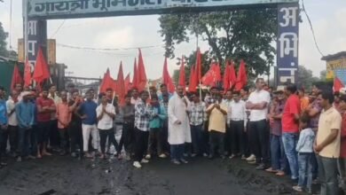 कोयला खदान में एक दिवसीय हड़ताल, श्रमिक संगठन के नेतृत्व में ठेका मजदूरों ने किया प्रदर्शन..