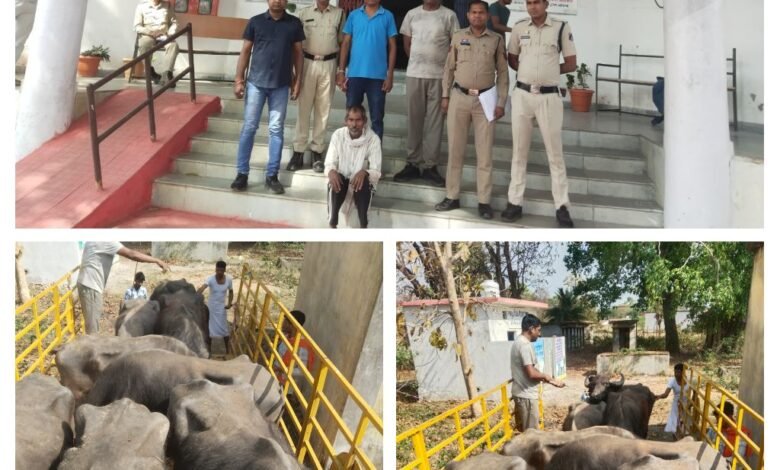 कोरिया:– पुलिस अधीक्षक रवि कुमार कुर्रे (भा.पु.से.), जिला कोरिया के निर्देशन, अतिरिक्त पुलिस अधीक्षक सुरेशा चौबे तथा अनुविभागीय अधिकारी (पुलिस) राजेश साहू के मार्गदर्शन में थाना सोनहत पुलिस ने अवैध पशु परिवहन के खिलाफ बड़ी कार्रवाई करते हुए 17 नग भैंसा जप्त किए हैं।