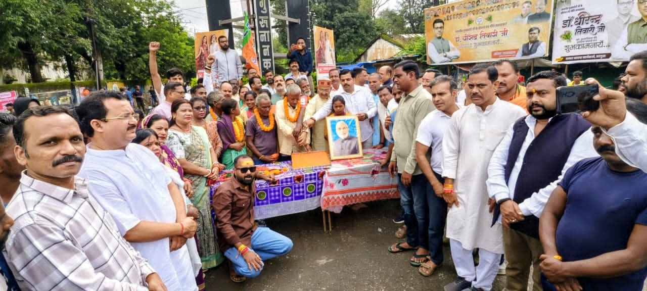 अंबिकापुर :– देश के यशस्वी प्रधानमंत्री नरेंद्र मोदी का 75वां जन्मदिवस भारतीय जनता पार्टी सरगुजा द्वारा सेवा पखवाड़ा के रूप में हर्षोल्लास से मनाया गया। जिले के सभी मंडलों में स्वास्थ्य शिविर, रक्तदान शिविर एवं स्वच्छता से जुड़े अनेक कार्यक्रम आयोजित किए गए।    इसी क्रम में जिला चिकित्सालय अंबिकापुर में कैबिनेट मंत्री राजेश अग्रवाल, विधायक प्रबोध मिंज, युवा आयोग अध्यक्ष विश्वविजय तोमर की विशेष उपस्थिति में    भव्य रक्तदान शिविर का आयोजन किया गया तथा प्रधानमंत्री नरेंद्र मोदी के उद्बोधन का लाइव प्रसारण भी किया गया। रक्तदान शिविर के प्रभारी अंशुल श्रीवास्तव ने जानकारी दी कि अंबिकापुर एवं सीतापुर मंडल के कार्यकर्ताओं एवं आमजनों ने मिलकर कुल 57 यूनिट रक्तदान किया। युवा मोर्चा सेवा पखवाड़ा के आगामी दिनों में 75 यूनिट रक्तदान के लक्ष्य को पूरा करेगा।