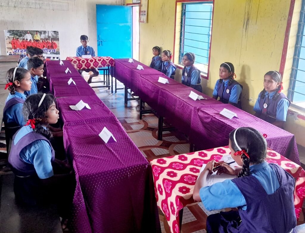 सूरजपुर क्षेत्र के प्रथम बस्तामुक्त विद्यालय शासकीय पूर्व माध्यमिक शाला रुनियाडीह में गत शनिवार दिवस पर बाल कैबिनेट की बैठक संस्था की प्रधानमंत्री अंजू राजवाड़े की अध्यक्षता मे आयोजित की गई। बैठक शुभारंभ छत्तीसगढ़ महतारी पूजन व राजगीत समूह गायन के साथ की गई। बैठक मे कार्यवाही संपादन उप प्रधानमंत्री केशवनंद राजवाड़े द्वारा कराई गई व बारी-बारी से सभी मंत्रियों ने अपने विभाग से संबंधित समस्याओं को बाल कैबिनेट के पटल पर रखा। सबसे पहले शिक्षामंत्री मयूरी राजवाड़े ने मांग रखी कि त्रैमासिक परीक्षा के अनुरूप पाठ्यक्रम अध्ययन- अध्यापन कराया जाए तथा विज्ञान एवं अंग्रेजी विषय विशेषज्ञ शिक्षको की नियुक्ति विद्यालय में कराई जाए, जिससे दोनों विषय की अध्यापन कार्य अच्छे से हो सके, चार्ट पेपर 20 नग, खेलमंत्री दीपक राजवाड़े द्वारा बालकों हेतु 12 नग खेल गणवेश, खेलकूद के दौरान लगने वाली चोट इत्यादि के लिए प्राथमिक स्वास्थ्य किट के लिए पर्याप्त मात्रा में टिंचर आयोडीन, मूव, डेटॉल, कॉटन, पट्टी इत्यादि, पुस्तकालय मंत्री नीता राजवाड़े द्वारा 50 नग नई कहानी पुस्तक, स्वच्छता मंत्री अनीता राजवाड़े व उपमंत्री रजनी विश्वकर्मा द्वारा फिनाइल व कचरा एकत्र कर उठाने के लिए 03 नग सुपली, सांस्कृतिक मंत्री प्रेमलता द्वारा सांस्कृतिक कार्यक्रम हेतु पुरुष पहनावा के लिए 10 नग धोती, बागवानी मंत्री सुनिता राजवाड़े द्वारा गमला 20 नग, 03 नग बाल्टी, 03 नग जग, वर्मी कम्पोस्ट खाद 50 किलो, कक्षा नायक आठवीं मंयक राजवाड़े द्वारा ब्लैकबोर्ड सफाई के लिए 03 नग डसटर, चॉक 01 बडी पेटी तथा अनुशासन मंत्री अंश देवांगन द्वारा धन्यवाद ज्ञापित कर सभा समाप्त की गई।