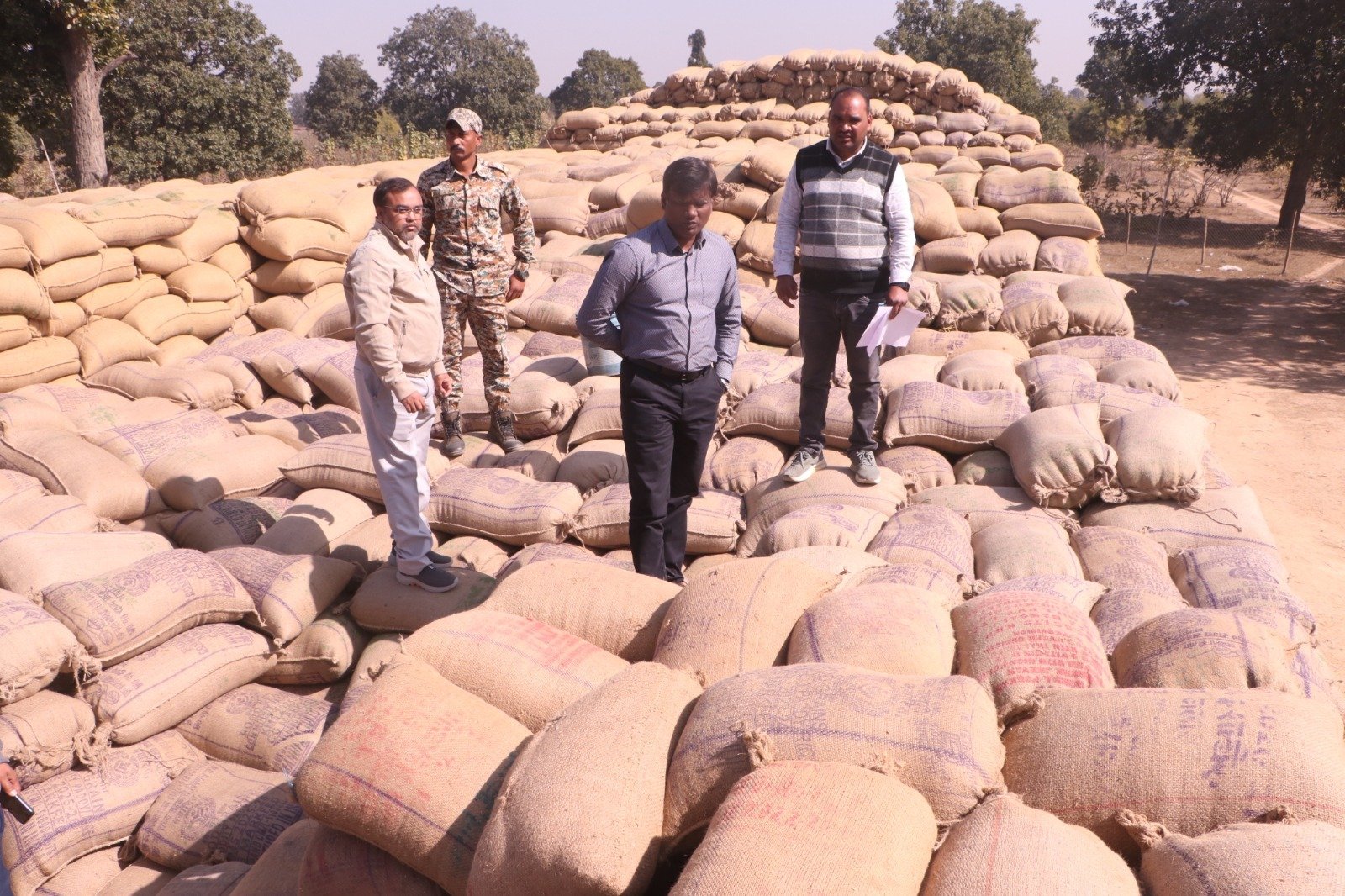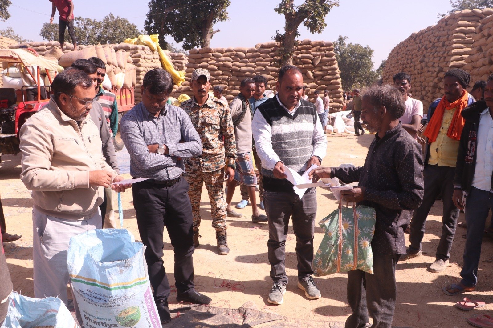 सूरजपुर कलेक्टर श्री एस. जयवर्धन ने आज जिले के विभिन्न धान खरीदी केंद्रों का औचक निरीक्षण कर व्यवस्थाओं का जायजा लिया। निरीक्षण के दौरान उन्होंने धान खरीदी की प्रक्रिया में पारदर्शिता और नियमों के कड़ाई से पालन के निर्देश दिए। धान खरीदी केंद्र परशुरामपुर के निरीक्षण के दौरान कलेक्टर ने किसानों को पुराने धान को बिक्री से रोकने के लिए कहा।