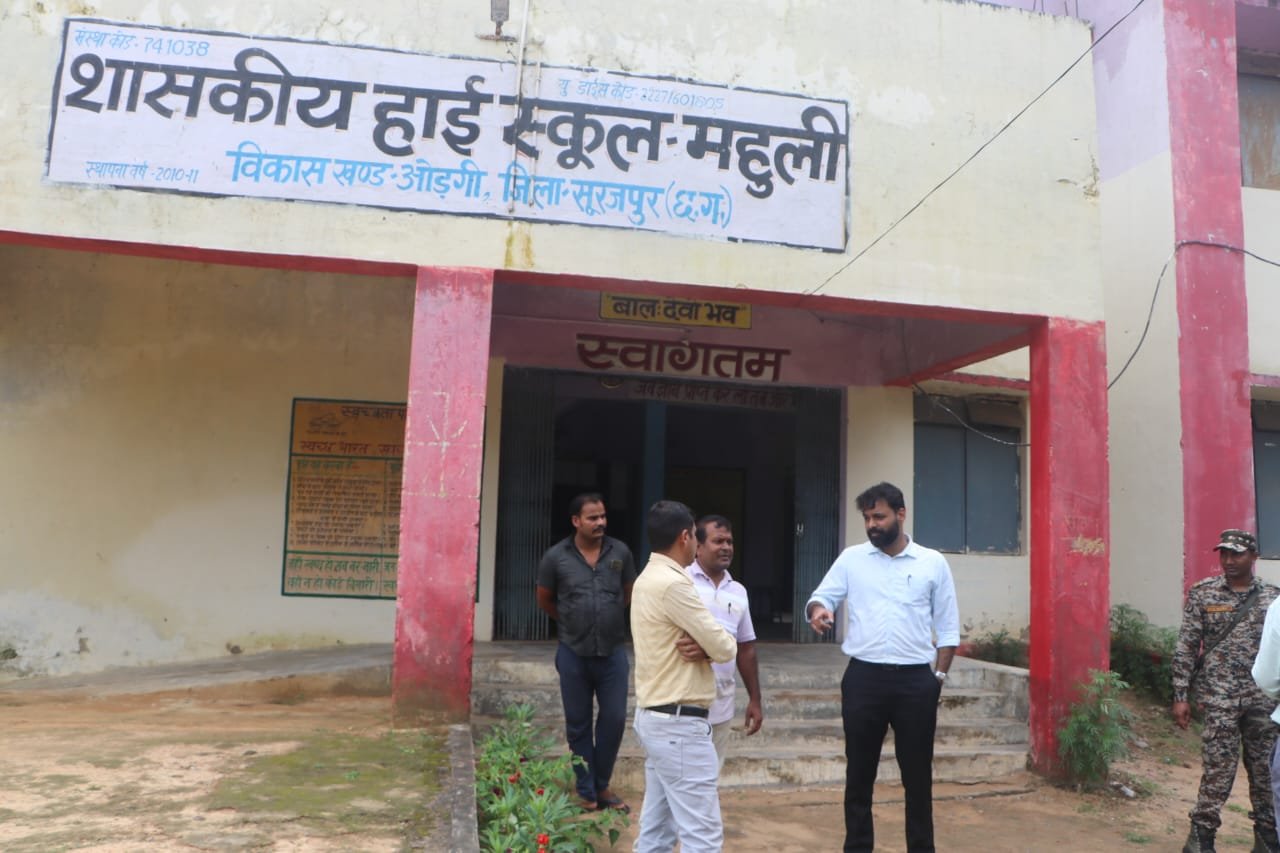 सूरजपुर:– आज कलेक्टर श्री व्यास ने जिले के ओड़गी विकासखंड अंतर्गत ग्राम महुली एवं बिहारपुर का दौरा किया। इस अवसर पर उन्होंने महुली के उपस्वास्थ्य केंद्र, पीएम श्री प्राथमिक शाला, शासकीय हाई स्कूल एवं मिडिल स्कूल, ग्रामीण सचिवालय तथा बिहारपुर में सामुदायिक स्वास्थ्य केंद्र, बालक आश्रम और छात्रावास ,आत्मानंद स्कूल और तहसील के निर्माण कार्यों का निरीक्षण किया। साथ ही इस अवसर पर उन्होंने ग्रामीण जनों के विभिन्न समस्याओं को भी सुना।