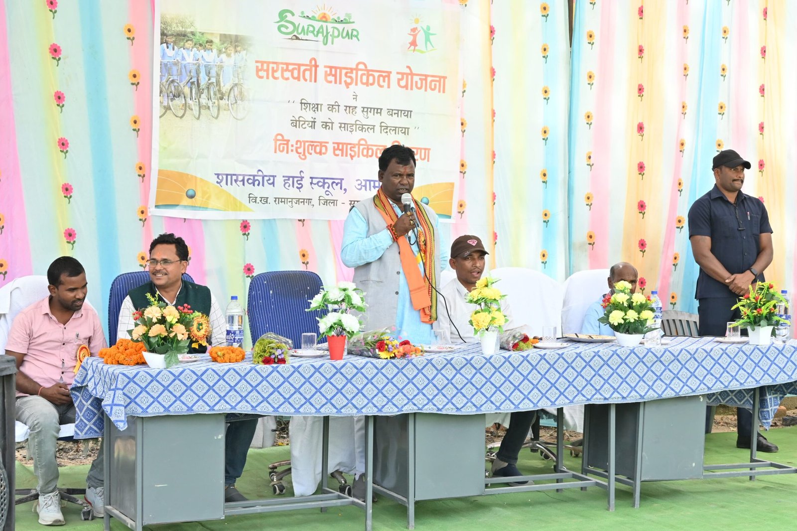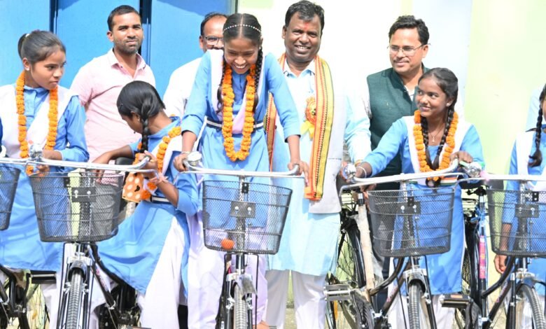 सूरजपुर:– हाई स्कूल आमगांव में निशुल्क सरस्वती साइकिल योजना अंतर्गत क्षेत्रीय विधायक सम्माननीय श्री भूलन सिंह मरावी के कर कमल से 19 छात्राओं को साइकिल वितरण किया गया। सरस्वती माता के छाया चित्र का पूजन अर्चन पश्चात सर्व प्रथम प्राचार्य डी एस लकड़ा ने स्वागत भाषण दिया।