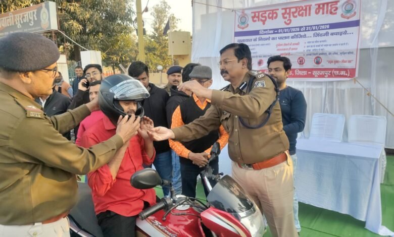 सूरजपुर :– सड़क सुरक्षा माह के अंतर्गत बुधवार, 14 जनवरी 2026 को डीआईजी व एसएसपी सूरजपुर श्री प्रशांत कुमार ठाकुर ने 70 जरूरतमंद लोगों को हेलमेट वितरित कर सड़क सुरक्षा का संदेश दिया, हेलमेट पहनने की अनिवार्यता क्यों जरूरी है बताई और कहा कि सुरक्षा विकल्प नहीं जिम्मेदारी है। हेलमेट का सहयोग एनजीओ मिशन नेकी ने कराया था।