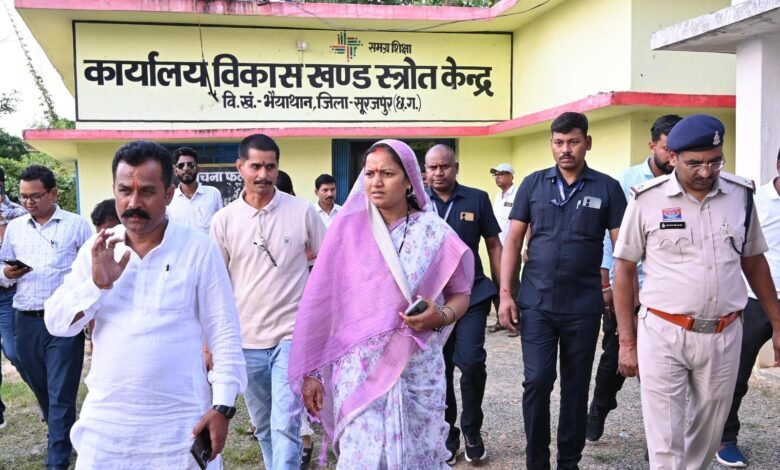 भैयाथान प्रवास के दौरान मंत्री श्रीमती राजवाड़े ने एसडीएम कार्यालय, तहसील कार्यालय, जनपद कार्यालय, विकासखंड कार्यालय एवं शिक्षा अधिकारी कार्यालय का निरीक्षण भी किया। उन्होंने अधिकारियों-कर्मचारियों से विभिन्न कार्यों की जानकारी ली और विभागीय गतिविधियों की समीक्षा की।