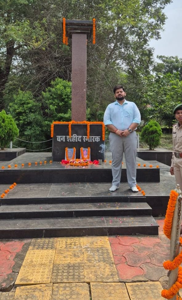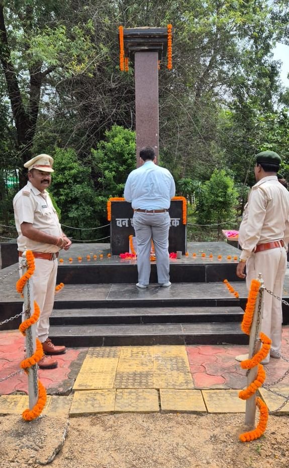 सूरजपुर :– आज शिव पार्क सूरजपुर में राष्ट्रीय वन शहीद दिवस के स्मृति में शहीद दिवस कार्यक्रम का आयोजन किया गया। उक्त कार्यक्रम में वनमण्डलाधिकारी श्री पंकज कुमार कमल द्वारा वन विभाग के शहीद कर्मचारियों के फोटो में माल्यार्पण कर श्रद्धांजलि अर्पण किया गया।