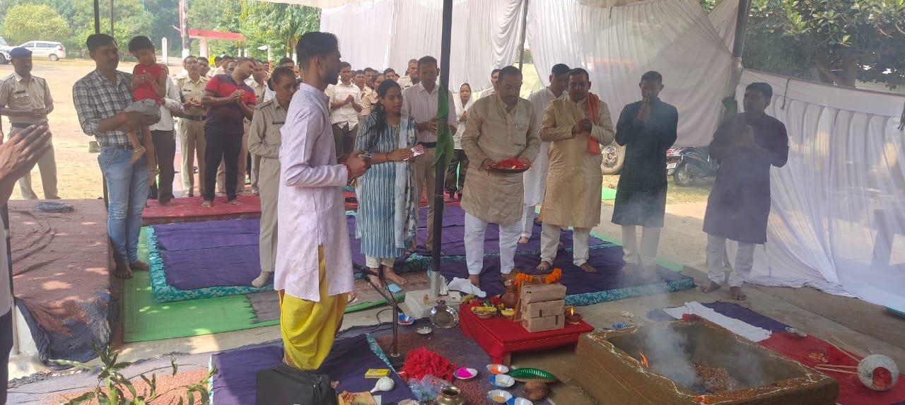 सूरजपुर:– विजयादशमी पर्व पर पुलिस लाईन, थाना-चौकी में शस्त्र पूजन की गई। डीआईजी व एसएसपी सूरजपुर श्री एम.आर.आहिरे (भापुसे) ने शनिवार, 12 अक्टूबर 2024 को विजय दशमी पर्व पर अपनी परम्परा के अनुसार पुलिस लाईन पर्री में विधि विधान से शस्त्र पूजन करते हुये मॉ दुर्गा की आरती की। पूजा के उपरान्त डीआईजी/एसएसपी श्री आहिरे ने सभी अधिकारी-कर्मचारियों को दशहरा पर्व की शुभकामनाएं दी। आज विजयादशमी के दिन सूरजपुर जिले के सभी थाना-चौकी प्रभारियों के द्वारा भी हथियारों पर पुष्प और कंकु लगाकर मंत्रोच्चार के साथ विधि विधान से पूजा सम्पन्न करवाई।