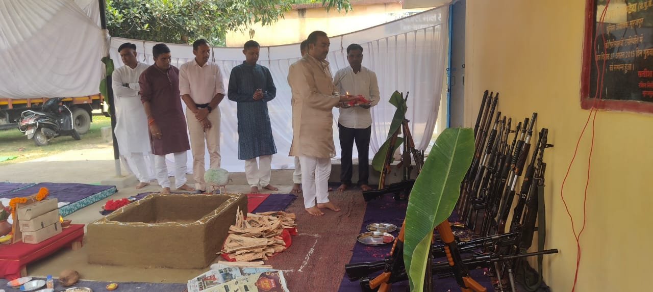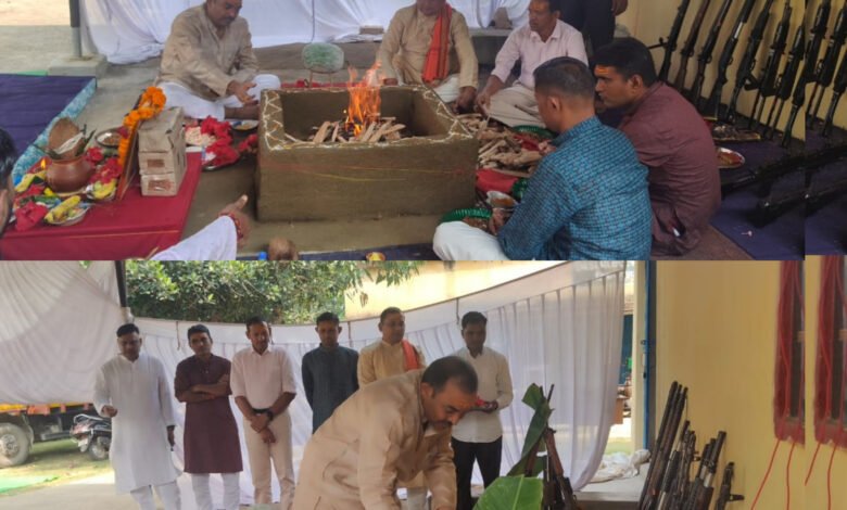 विजयादशमी पर्व पर डीआईजी/एसएसपी सूरजपुर ने किया पुलिस लाईन में शस्त्र पूजन..