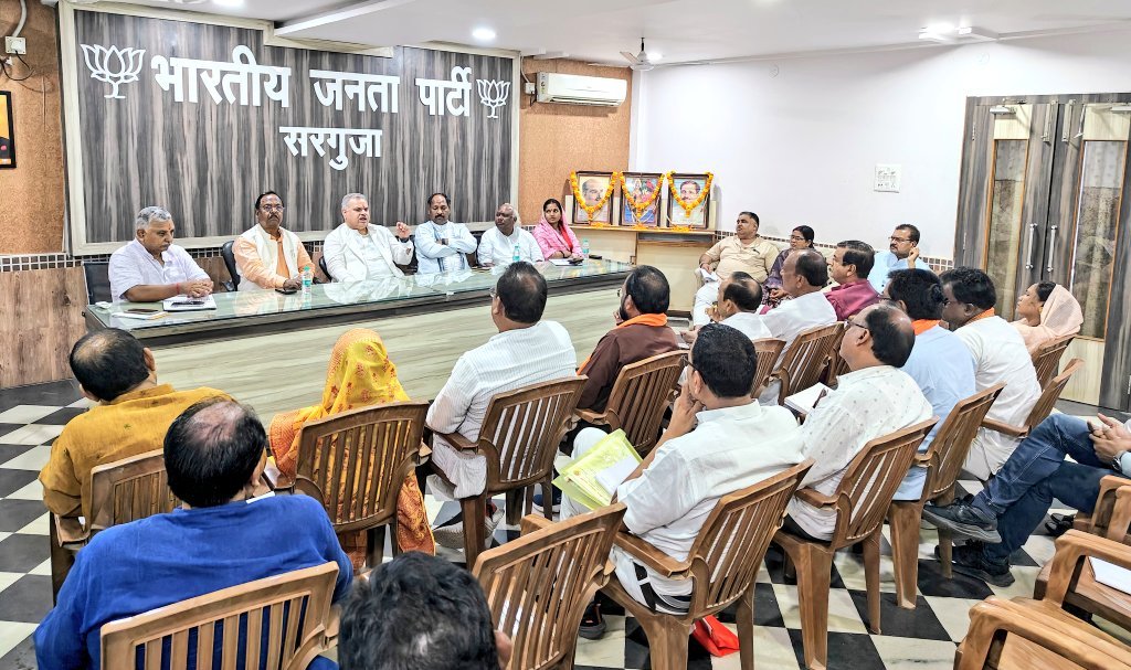 अंबिकापुर:– भाजपा सदस्यता अभियान को लेकर भाजपा क्षेत्रीय संगठन मंत्री अजय जामवाल तथा प्रदेश संगठन महामंत्री पवन साय ने आज संकल्प भवन भाजपा कार्यालय में सरगुजा संभाग में अब तक हुए भाजपा के सदस्यता अभियान की समीक्षा की। कृषि मंत्री रामविचार नेताम , महिला एवं बाल विकास मंत्री श्रीमती लक्ष्मी राजवाड़े , सरगुजा सांसद चिन्तामणि महाराज तथा संभागीय संगठन प्रभारी राजा पांडेय की उपस्थिति में आयोजित महत्वपूर्ण बैठक में बूथ, शक्तिकेंद्र तथा मण्डल व ज़िलों में अब तक हुए सदस्यता अभियान की जानकारी ली गई साथ हीं आगामी कार्य योजना पर विस्तार से चर्चा हुई।