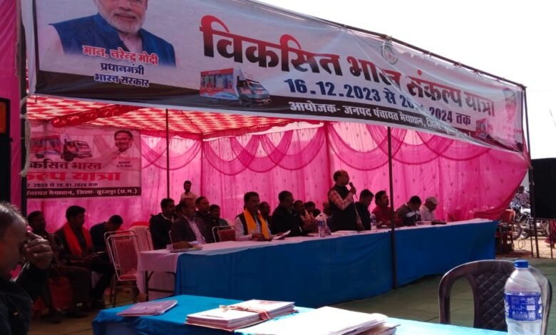 सूरजपुर जिले में निरंतर सकारात्मक दिशा में तेजी से आगे बढ़ रही है। जनहित एवं जनकल्याण के लिए प्रारम्भ की यह यात्रा ज्यादा से ज्यादा लोगों के बीच पहुंचे इसके लिए आज जिला प्रशासन ने कार्यक्रम के द्वितीय दिवस पर पांच स्थल चयनित किये और प्रत्येक चयनित क्षेत्र में दो-दो जगह शिविर लगाए। आज द्वितीय दिवस पर विकसित भारत संकल्प यात्रा का रथ भैयाथान में बुंदिया व बतरा, प्रेमनगर में नवापारा कला व कोटेया, सूरजपुर में सरमा व नेवरा, रामानुजनगर में पम्पापुर व चंद्रपुर, प्रतापपुर में बोंगा व गोविंदपुर पहुंचा। कुल दस जगहों में दो पाली में कार्यक्रम का आयोजन किया गया। कार्यक्रम में लगाए गए शिविर का मुख्य उद्देश्य योजनाओं का लाभ लाभार्थियों, विशेष तौर से वंचित व आकांक्षी लोगो तक समयबद्ध तरीके से पहुँचाना था।