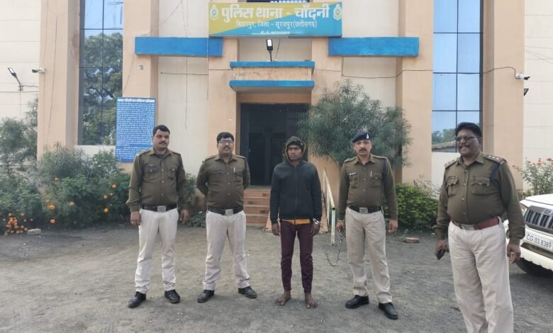 पुलिस अधीक्षक सूरजपुर श्री आई कल्याण एलिसेला ने हत्या के फरार आरोपी को जल्द गिरफ्तार करने पुलिस टीम गठित कर लगाया। थाना चांदनी की पुलिस आरोपी की लगातार पतासाजी में लगी थी इसी बीच मुखबीर की सूचना पर छत्तीसगढ़-मध्यप्रदेश के बार्डर मकरोहर जंगल में दबिश देकर आरोपी कमलेश साकेत पिता गौतम साकेत उम्र 23 वर्ष ग्राम महुली, थाना चांदनी को पकड़ा गया। पूछताछ पर आरोपी ने हत्या की वारदात को अंजाम देना स्वीकार किया जिसके निशानदेही पर आलाजरब जप्त कर उसे गिरफ्तार किया गया है।