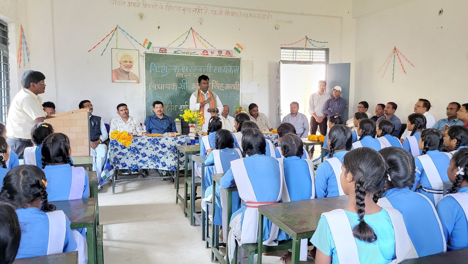 सूरजपुर/रामानुजनगर:– शासकीय हाई स्कूल कोट संकुल केंद्र-कोट,विकासखंड -रामानुजनगर ,जिला-सूरजपुर (छ. ग.) में शासन की महत्वाकांक्षी योजना निःशुल्क सरस्वती सायकल योजना के तहत प्रेमनगर विधानसभा क्षेत्र के सम्मानीय विधायक भूलन सिंह मरावी के मुख्य आतिथ्य व विधायक प्रतिनिधि संत कुमार साहू,संजय गुप्ता,शिवकेश्वर गुप्ता, जगनारायण सिंह, धरमसाय सिंह, खेलसाय राजवाड़े,विकासखंड शिक्षा अधिकारी रामानुजनगर पंडित भारद्वाज के विशिष्ट आतिथ्य में वितरण किया गया । विकासखंड शिक्षा अधिकारी पंडित भारद्वाज ने अपने उद्बोधन में सरस्वती सायकल योजना के बारे में विस्तृत जानकारी देते हुए बच्चियों को इस योजना से होने वाले लाभ से अवगत कराया गया,साथ ही सभी को अच्छे से अध्यापन करने हेतु प्रेरित किया गया।माननीय विधायक भूलन सिंह मरावी ने शासन की विभिन्न योजनाओं के बारे में बताते हुए बेटी बचाओ,बेटी पढ़ाओ ,बच्चों को मोबाइल से दूर रहने,माता-पिता का सम्मान करने के साथ साथ माता-पिता के सपनों को साकार करने हेतु खूब मेहनत करने की बात कही है।माननीय विधायक महोदय ने बच्चों द्वारा बनाये गए गुलदस्ता व माला से प्रभावित हो सभी से उपलब्ध संसाधनों का उपयोग करने की बात कही जिससे समय व राशि दोनों की बचत हो सके।