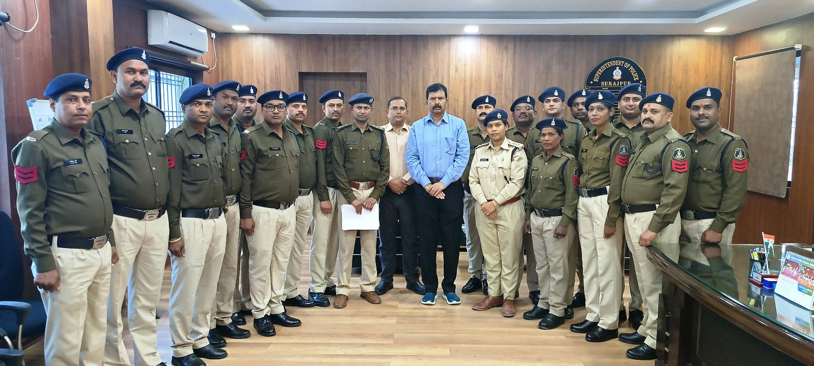 एसएसपी श्री प्रशांत कुमार ठाकुर ने पदोन्नत हुए प्रधान आरक्षकों को कहा कि फरियादी जब अपनी समस्या लेकर पुलिस के पास आता है तो हमसें अपनी समस्या के निराकरण व कार्यवाही की आशा-उम्मीद करता है उसे न्याय दिलाने की दिशा में त्वरित एक्शन ले और उसे संतुष्ट कर भेंजे, जनता के हित में कार्य करें, सौपें गए दायित्वों का पूर्ण निष्ठा के साथ ईमानदारी से निर्वहन करें। उन्होंने पदोन्नत हुए प्रधान आरक्षकों को उज्जवल भविष्य के लिए शुभकामनाए दी। इस दौरान अतिरिक्त पुलिस अधीक्षक संतोष महतो, एसडीओपी सूरजपुर नंदिनी ठाकुर, डीएसपी रितेश चौधरी, स्टेनो अखिलेश सिंह सहित अन्य पुलिस अधिकारीगण मौजूद रहे।