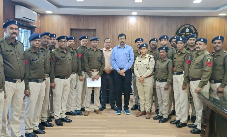सूरजपुर:– जिले में कार्यरत् 17 आरक्षक पदोन्नत होकर प्रधान आरक्षक बने। वरिष्ठ पुलिस अधीक्षक सूरजपुर श्री प्रशांत कुमार ठाकुर ने आरक्षक महेत्तर सिंह, देवनंदन राजवाड़े, ज्ञानेन्द्र परमार, कृष्णकांत पाण्डेय, दीपक सिंह, अलका टोप्पो, निमेश शर्मा, आशीष श्रीवास्तव, अनुज यादव, ग्रेसमनी मिंज, कमल किशोर, दीपक कुमार दुबे, राघवेन्द्र शर्मा, नंद किशोर राजवाड़े, लालमन राजवाड़े, रविशंकर पाण्डेय व नरेन्द्र मिश्रा को फीता लगाकर प्रधान आरक्षक पद पर पदोन्नति दी।