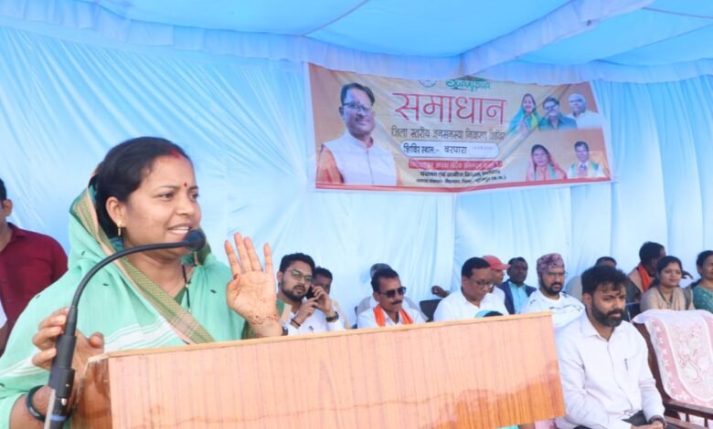 सूरजपुर:– आज जिले के भैयाथान जनपद अंतर्गत बरपारा में जिला स्तरीय समाधान शिविर का आयोजन महिला बाल विकास मंत्री श्रीमती लक्ष्मी राजवाड़े के मुख्य आतिथ्य में किया गया। आयोजित शिविर में कलेक्टर श्री रोहित व्यास द्वारा लोगों से संवाद कर उनके समस्याओं एवं शिकायतों को सुना गया। शिविर में जिलाधिकारियों द्वारा अपने विभाग की योजनाओं की विस्तृत जानकारी भी दी गई। इस दौरान शिकायतों एवं समस्याओं को लेकर 69 आवेदन प्राप्त हुए। इस अवसर पर मंत्री एवं कलेक्टर ने सभी लोगों से शिविर का ज्यादा से ज्यादा लाभ उठाने का आग्रह किया। इस अवसर पर सरपंच, सचिव सहित विभिन्न विभागों के जिला स्तरीय अधिकारी एवं अन्य जनप्रतिनिधि उपस्थित थे।