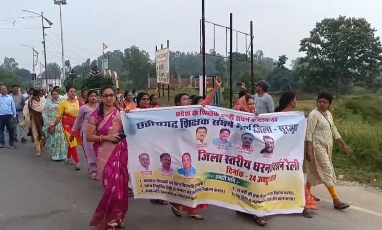 सूरजपुर:– छत्तीसगढ़ शिक्षक संघर्ष मोर्चा के बैनर तले विभिन्न मांगों को लेकर आज एक दिवसीय धरना प्रदर्शन व ज्ञापन सौंपा गया,,जहां उन्होंने मांग कि की एल बी संवर्ग के शिक्षकों के द्वारा मोदी के गारंटी के तहत सहायक शिक्षकों के वेतन विसंगति को दूर कर समस्त एल बी संवर्ग के शिक्षकों को क्रमोन्नत वेतनमान प्रदाय किया जावे।