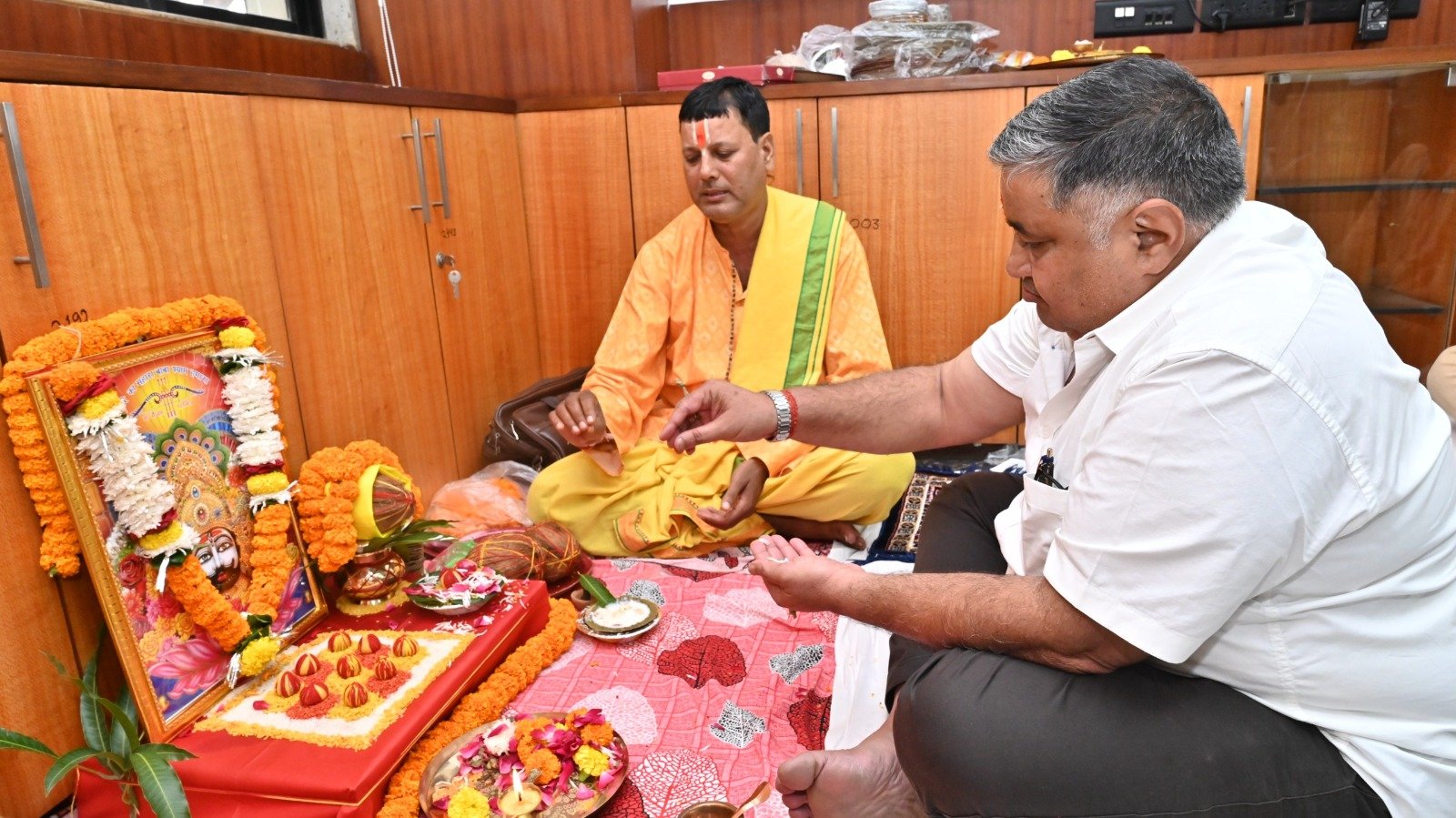 अम्बिकापुर :– पर्यटन, संस्कृति, धार्मिक न्यास एवं धर्मस्व मंत्री श्री राजेश अग्रवाल ने आज मंत्रालय महानदी भवन स्थित कार्यालय मे विधिवत पूजा अर्चना कर कामकाज की शुरूआत की। इस अवसर पर राजस्व मंत्री श्री टंकराम वर्मा, खाद्य मंत्री श्री दयाल दास बघेल, विधायक श्री अनुज शर्मा, श्री संपत अग्रवाल, श्री प्रबोध मिंज, श्रीमती उद्धेश्वरी पैंकरा, छत्तीसगढ़ गृह निर्माण मण्डल के अध्यक्ष श्री अनुराग सिंह देव, छत्तीसगढ़ भवन एवं अन्य संनिर्माण मंडल के अध्यक्ष श्री रामप्रताप सिंह, छत्तीसगढ़ संस्कृति परिषद के अध्यक्ष श्री शशांक शर्मा एवं श्री पवन साय और वरिष्ठ अधिकारियों ने उन्हें पुष्प गुच्छ भेंट कर बधाई और शुभकामनाएं दी।