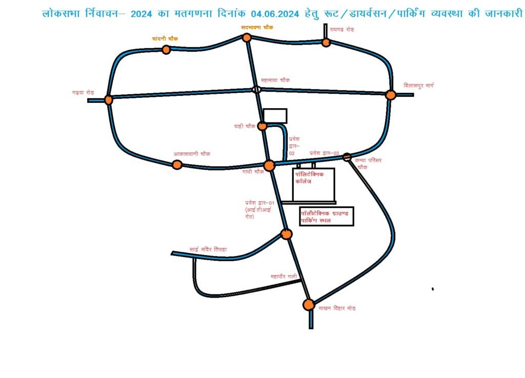अम्बिकापुर। लोकसभा निर्वाचन-2024“ का मतगणना 04 जून को पॉलिटेक्निक कॉलेज में होने के कारण आम जनता को यातायात के संबंध में किसी प्रकार की असुविधा न हो इसे दृष्टिगत् रखते हुये अम्बिकापुर शहर एवं अम्बिकापुर से होकर आने-जाने वाली वाहनों के लिए यातायात व्यवस्था सुगम एवं व्यवस्थित रूप से संचालित हो सके इसलिए सरगुजा पुलिस द्वारा ट्रैफिक एडवायजरी (प्रातः 06.00 बजे से रात्रि 08.00 बजे तक के लिए) जारी किया गया है, जो निम्नानुसार है-