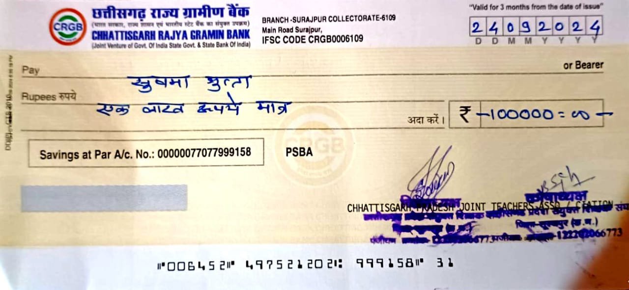छ.ग. प्रदेश सँयुक्त शिक्षक संघ के जिलाध्यक्ष सचिन त्रिपाठी के मार्गदर्शन में जिले में संचालित सँयुक्त संवेदना योजना में जिले के दो हजार से भी अधिक शिक्षको ने मिल कर अपने दो दिवंगत शिक्षक साथियों के दो लाख रुपये इकट्ठा कर उनके आश्रितों को संवेदना राशि प्रदान की। विकासखण्ड सूरजपुर के प्रा.शा. घाघीटिकरा में कार्यरत सहायक शिक्षक स्व. रंजीत राम व विकासखण्ड भैयाथान के शा.उ.मा.वि. सत्यनगर में पदस्थ व्याख्याता स्व.राजू प्रसाद गुप्ता की मृत्यु के पश्चात संवेदना सदस्य शिक्षक अपने दिवंगत साथी के घर पहुच दो मिनट का मौन रखते हुवे उन्हें श्रद्धांजलि अर्पित की व संवेदना स्वरूप सदस्य शिक्षक धनीराम तथा कार्यकारी ब्लॉक अध्यक्ष कुलदीप सिंह के हाथों एक-एक लाख रुपये का चेक प्रदान किया।
