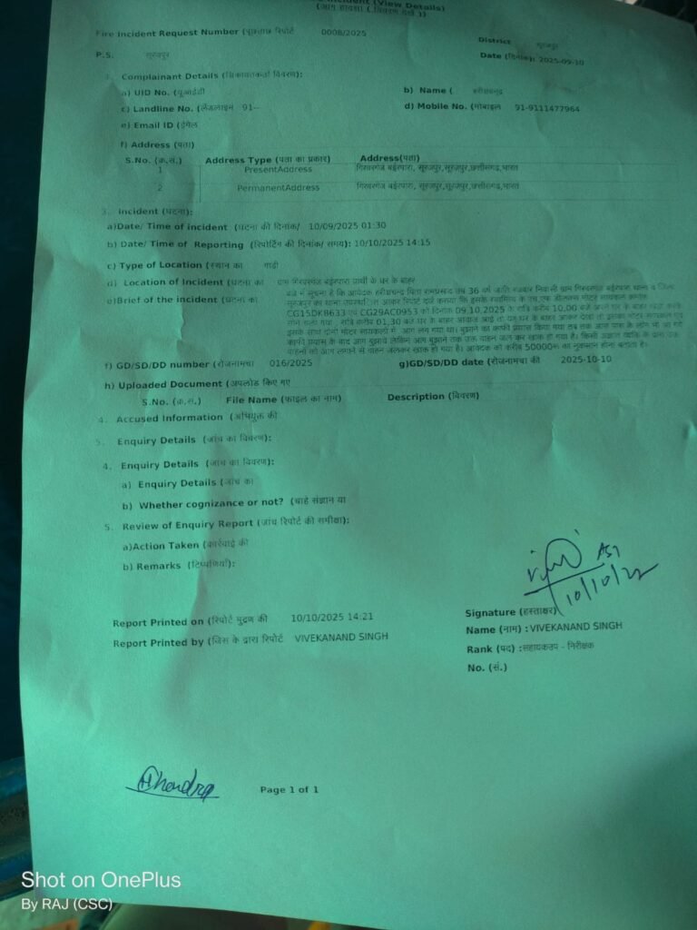 अगले दिन, 10 अक्टूबर को पीड़ित हरिशंकर ने ग्राम पंचायत के सरपंच हरि सिंह, उपसरपंच गजानंद राजवाड़े, बीडीसी सदस्य लक्ष्मण राजवाड़े और राजेश राजवाड़े के साथ सूरजपुर कोतवाली पहुंचकर अज्ञात आरोपी के विरुद्ध एफआईआर दर्ज कराई।