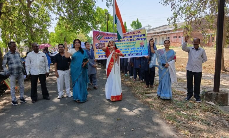 संस्था की प्राचार्य श्रीमती पूर्णिमा ने मतदाताओं को मतदान के महत्व को समझते हुए कहा कि एक-एक वोट महत्वपूर्ण है, इस लिए इसे व्यर्थ न जाने दें। 07 मई मतदान दिवस पर लोकतंत्र के इस महापर्व में हिस्सा लें और मतदान कर अपना कर्तव्य निभाएं।इस दौरान ग्रामीण मतदाताओं को शत-प्रतिशत मतदान के लिए शपथ भी दिलाई गई।